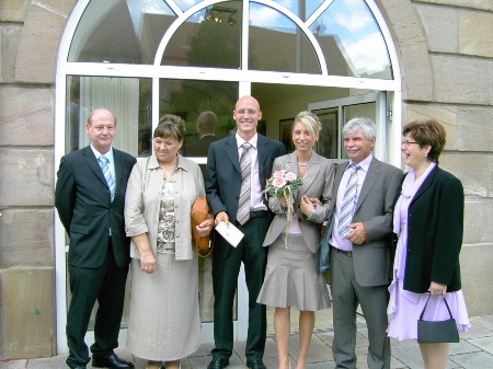 Vor dem Standesamt mit den Eltern und Schwiegereltern
